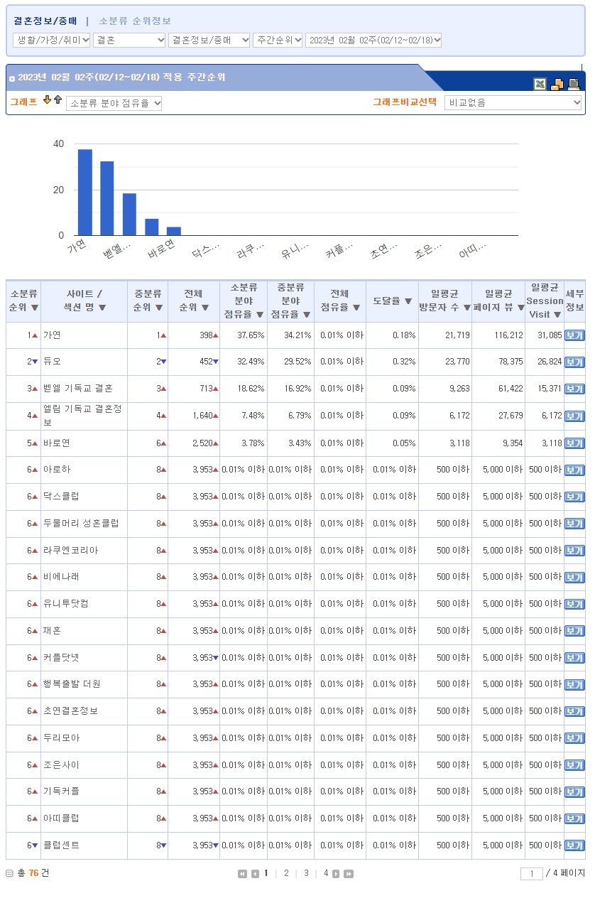 ·©Å°´åÄÄ °áÈ¥Á¤º¸/Á߸Šȸ»ç ºÐ¾ß 23³â 2¿ù 2ÁÖÂ÷ °áÈ¥Á¤º¸È¸»ç ¼øÀ§ 1À§ °¡¿¬ °áÈ¥Á¤º¸, 2À§ µà¿À, 3À§ º¦¿¤ ±âµ¶±³ °áÈ¥